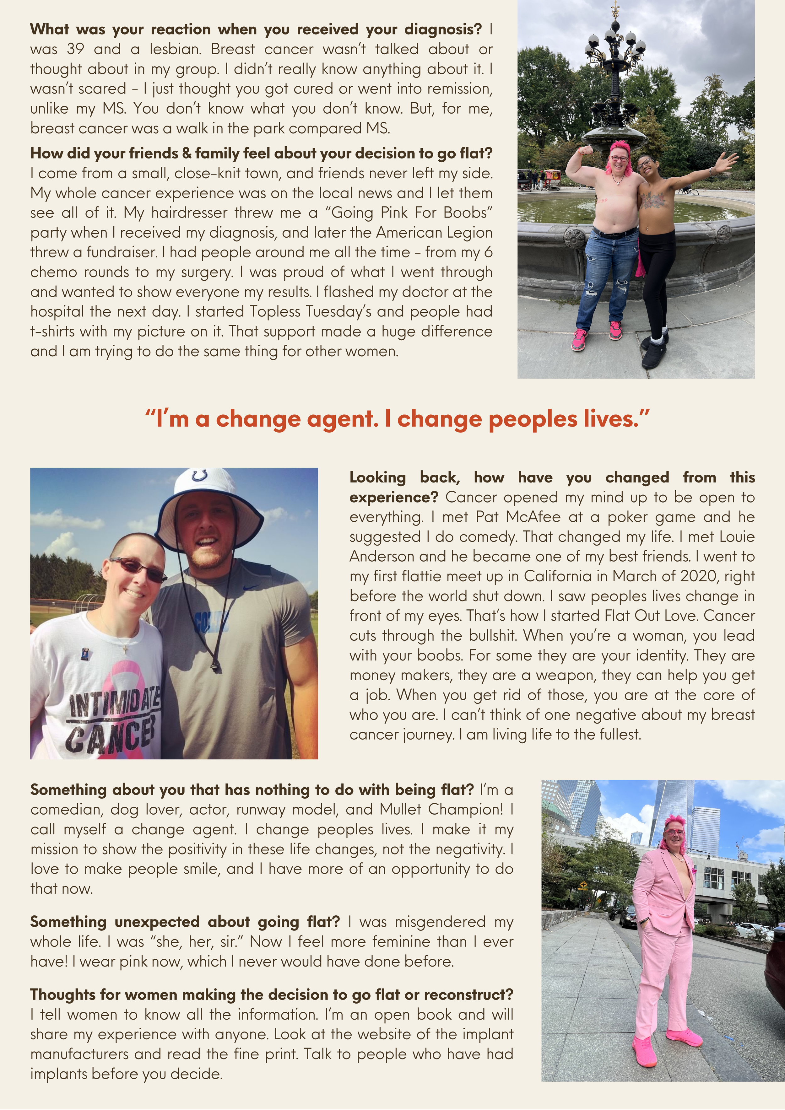 Our loftiest hope is that women struggling with the decision to go flat after a breast cancer diagnosis, connect with these stories and feel supported in whatever decision they make.